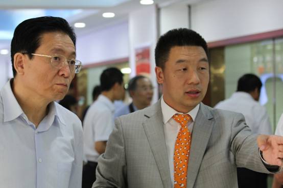 自治區(qū)農(nóng)牧業(yè)廳副廳長(zhǎng)云挨厚(左一)在蒙羊牧業(yè)總裁閆樹(shù)春的陪同下參觀考察生產(chǎn)線(xiàn)