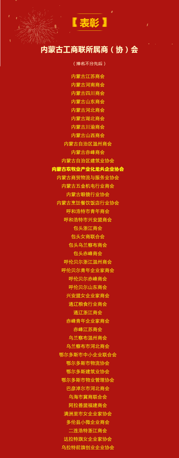 標(biāo)題:喜報(bào)!內(nèi)蒙古農(nóng)牧業(yè)產(chǎn)業(yè)化龍頭企業(yè)協(xié)會(huì)再次榮獲全國(guó)“四好”商會(huì)榮譽(yù)稱號(hào)