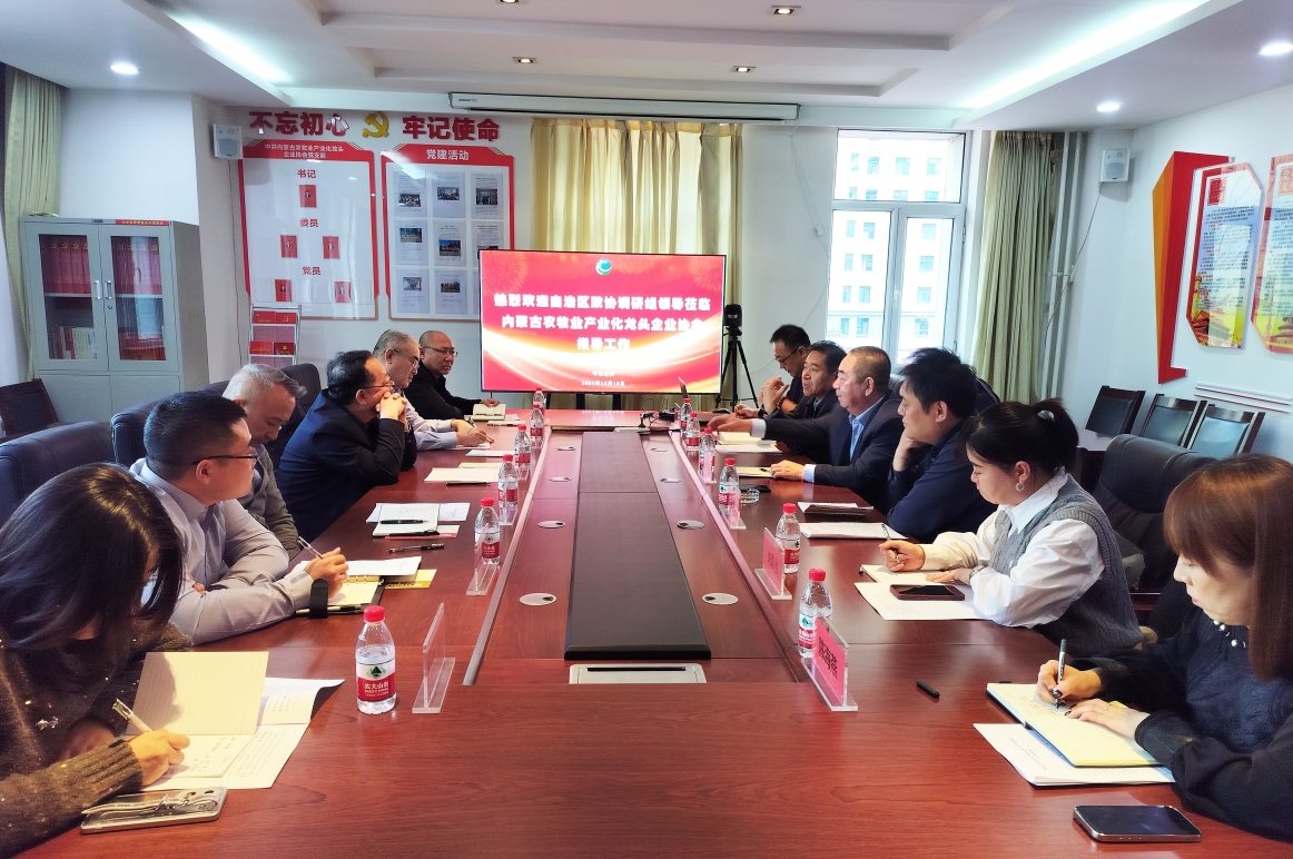 2024年12月18日下午,自治區(qū)政協(xié)委員、港澳臺僑聯(lián)絡(luò)和外事委員會主任張波,內(nèi)蒙古工業(yè)大學(xué)僑聯(lián)副主席新巴雅爾,內(nèi)蒙古航空職業(yè)技術(shù)學(xué)校校長、內(nèi)蒙古航空運動協(xié)會會長趙自強(qiáng),自治區(qū)政協(xié)港澳臺僑聯(lián)絡(luò)和外事委員會辦公室主任安勝利一行6人來協(xié)會調(diào)研指導(dǎo)工作,協(xié)會副會長單位內(nèi)蒙古凌志馬鈴薯科技股份有限公司總經(jīng)理閆洪志、內(nèi)蒙古民豐種業(yè)有限公司劉榮書,常務(wù)理事單位內(nèi)蒙古額爾敦羊業(yè)股分有限公司董事長助理畢欣及協(xié)會秘書處全體工作人員參加會議,會議由協(xié)會秘書長呼群主持。