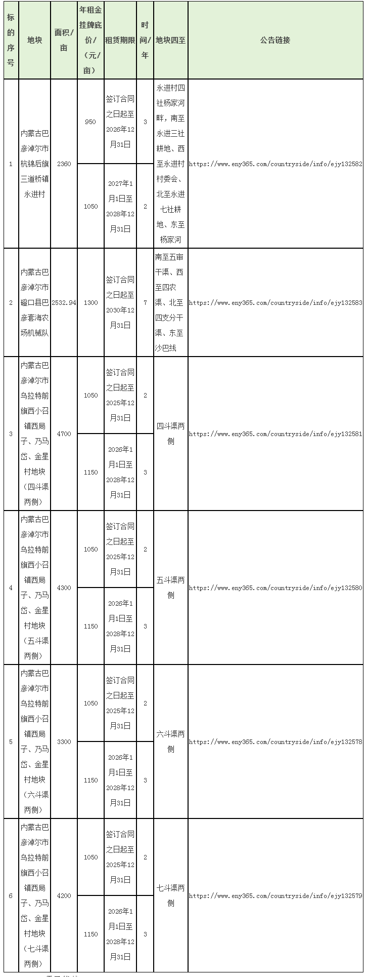巴彥淖爾市農墾(集團)有限公司6宗耕地出租