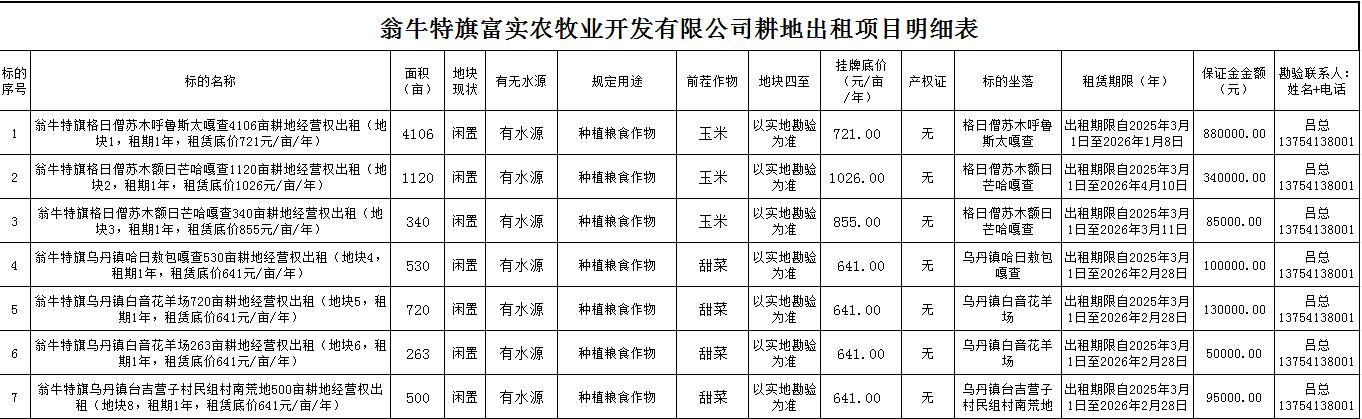 標(biāo)的坐落:赤峰市翁牛特旗(詳見項目明細(xì)表)