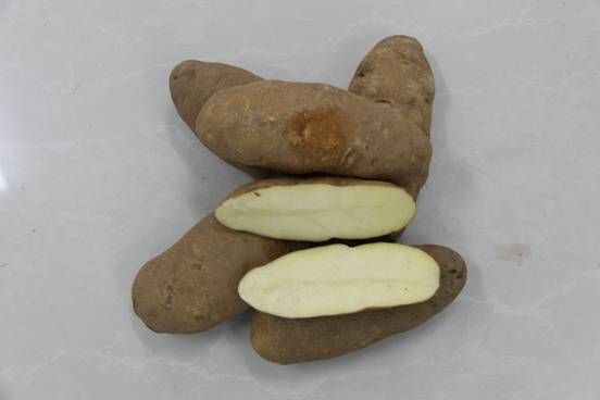 【特征特性】株型擴散,莖粗壯,有淡紅紫色素,葉綠色,花白色,開花期短。塊莖長形,結(jié)薯麻皮較厚,呈褐色,白肉,芽眼少而淺,干物質(zhì)含量23%~24%,淀粉含量17%,還原糖含量低于0.2%。生育期120天左右。耐貯藏性良好適宜現(xiàn)代化栽培,產(chǎn)量可達4噸以上。