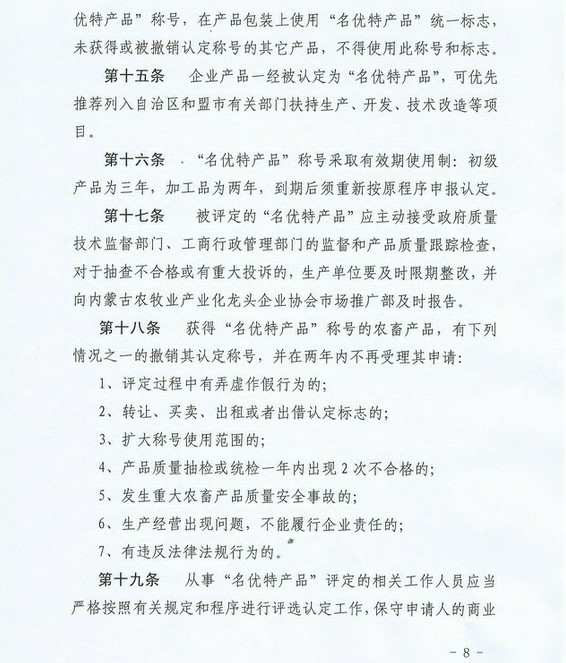 關于印發(fā)《內(nèi)蒙古農(nóng)牧業(yè)產(chǎn)業(yè)化龍頭企業(yè)名優(yōu)特產(chǎn)品認定辦法》的通知