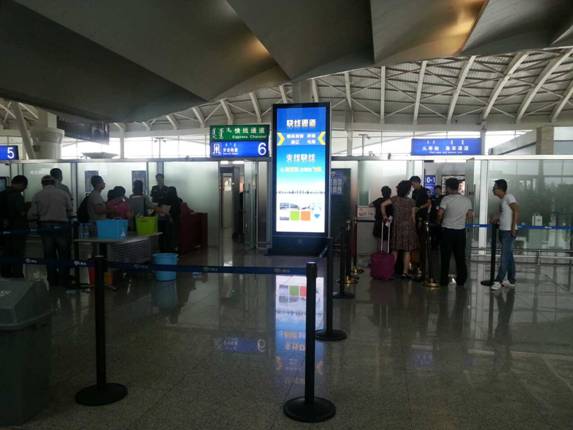 我公司兩臺終端分別布放在呼和浩特白塔機場二樓安檢口,急客通道安檢口。觀賞位置醒目、高端客戶人群集中,能夠為企業(yè)形象宣傳起到非常好的角色作用。呼和浩特白塔國際機場作為內(nèi)蒙古自治區(qū)要塞空中門戶,是國內(nèi)重要干線機場,現(xiàn)在通往國內(nèi)外的航線有89條,通往城市多達44個,每周出港航班平均為502個。每年客戶吞吐量達400萬人次。呼和浩特白塔國際機場是商家、廠家各名牌企業(yè)推廣宣傳的首選。