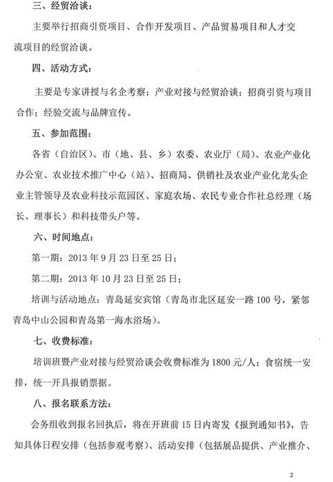 關于舉辦現(xiàn)代農業(yè)產業(yè)化專題培訓班暨東西部產業(yè)對接與經貿洽談會議的邀請函