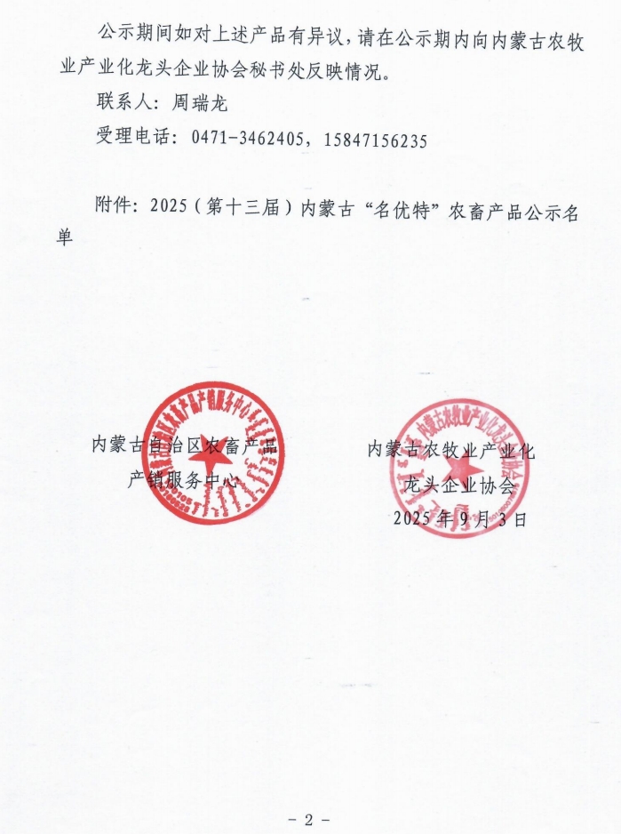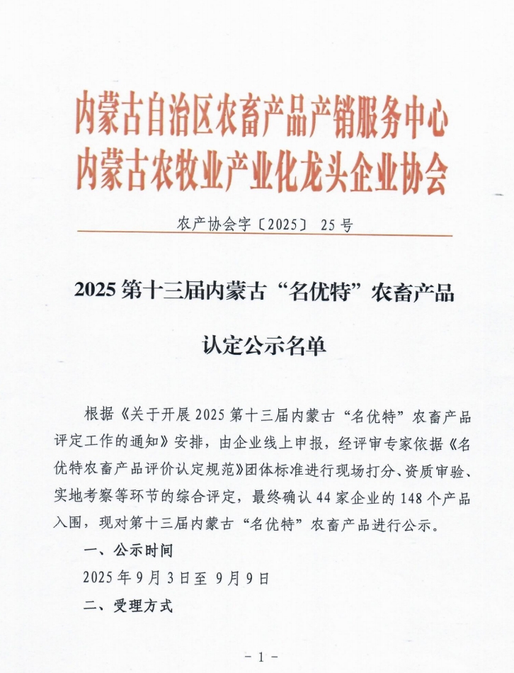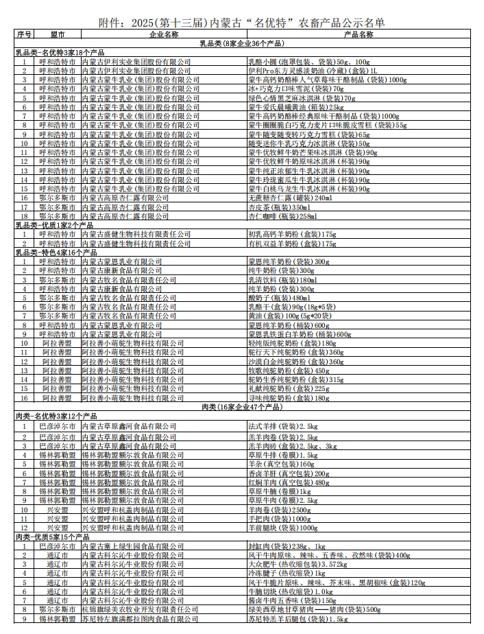 2025第十三屆內(nèi)蒙古“名優(yōu)特”農(nóng)畜產(chǎn)品認(rèn)定公示名單