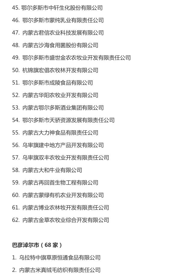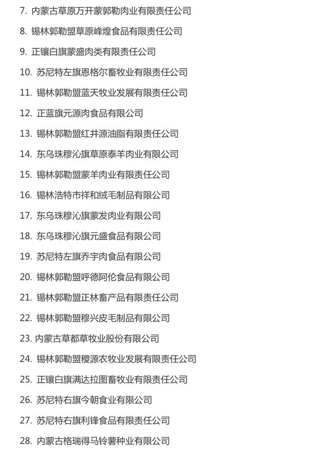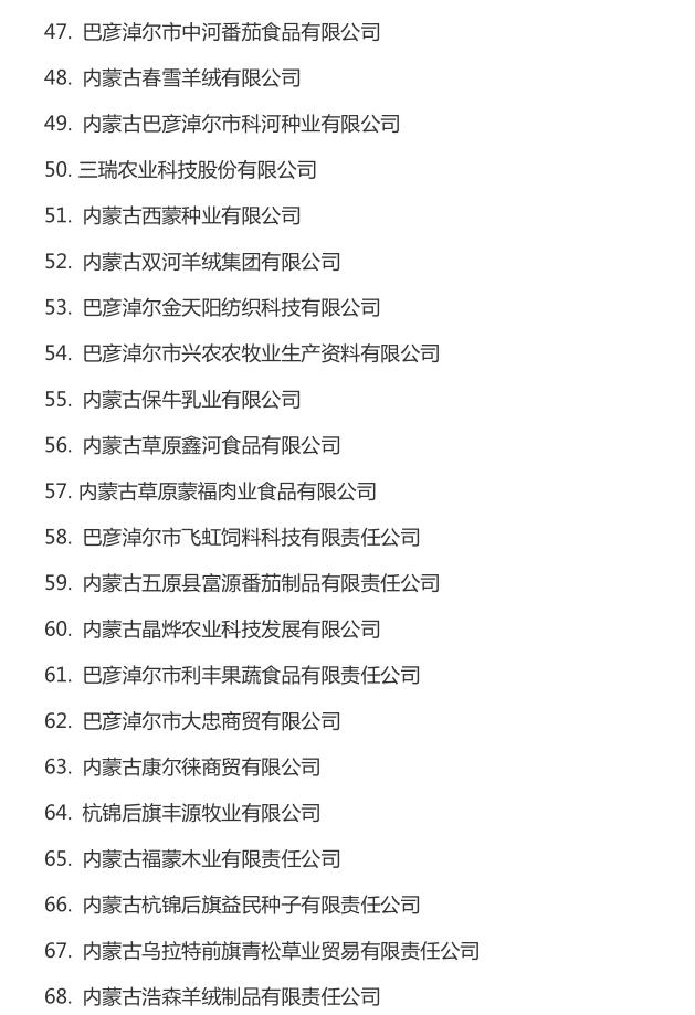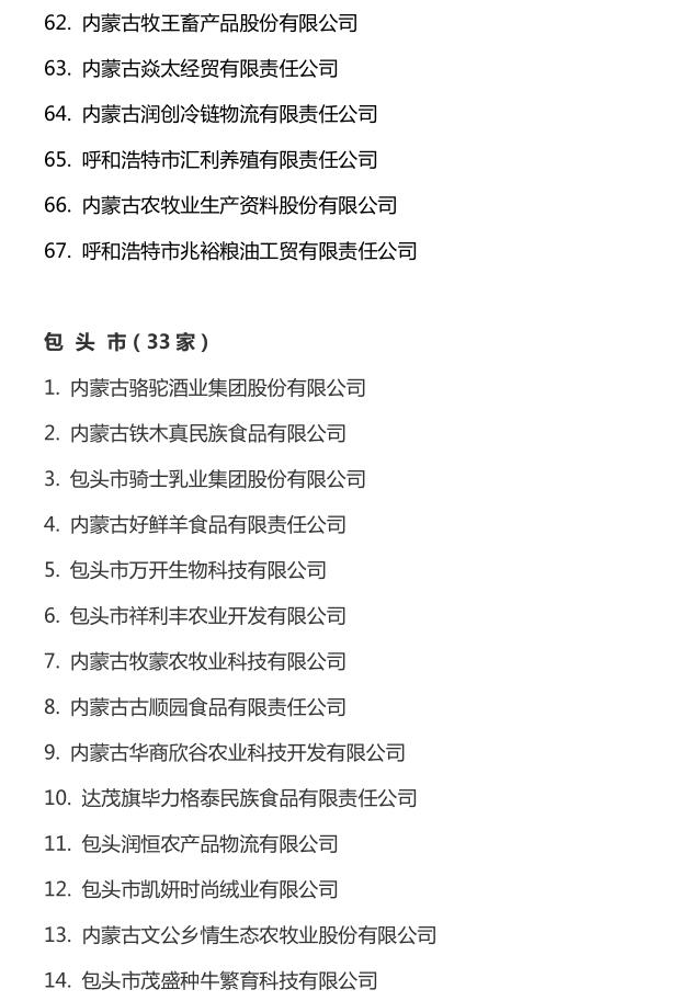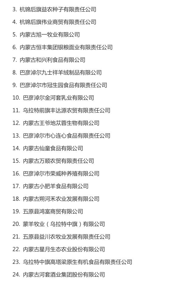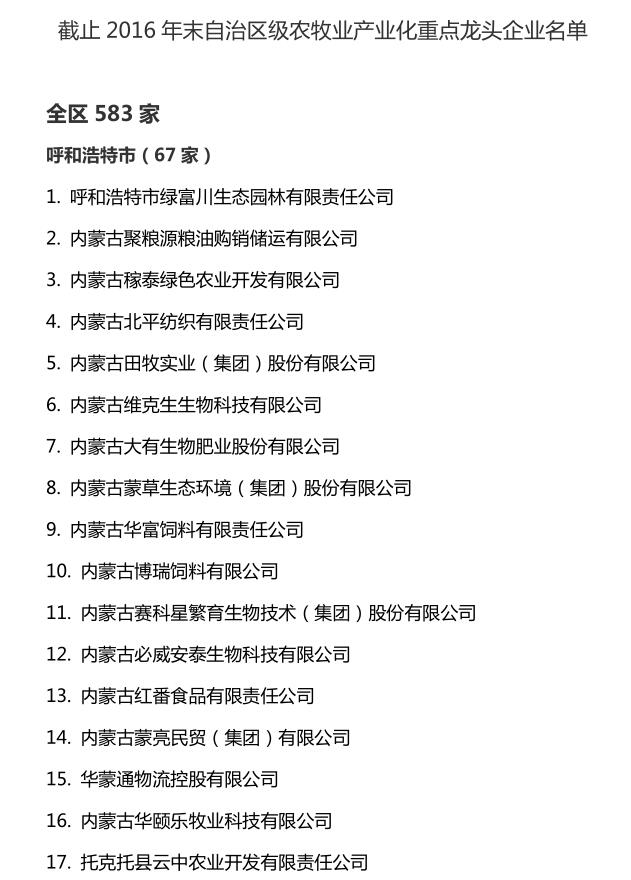 企業(yè)名稱(chēng):截止2016年末自治區(qū)級(jí)農(nóng)牧業(yè)產(chǎn)業(yè)化 重點(diǎn)龍頭企業(yè)名單​