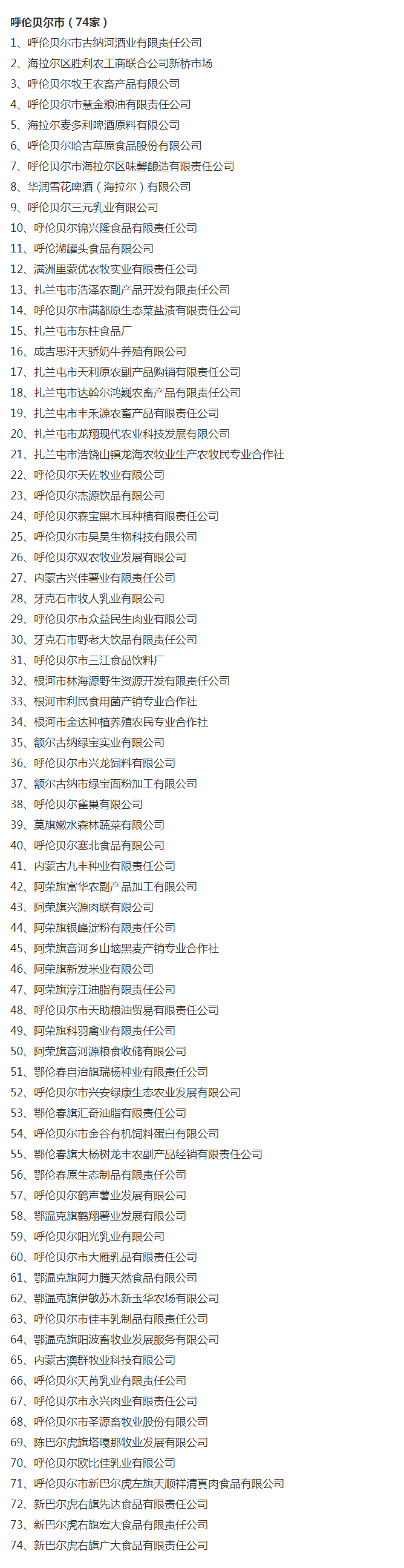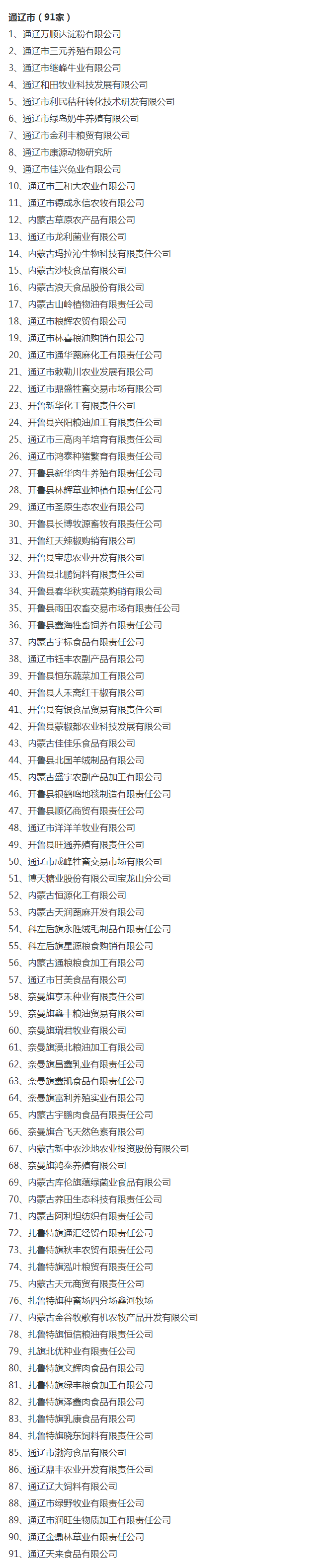 企業(yè)名稱:截止2017年末盟市級農(nóng)業(yè)產(chǎn)業(yè)化重點龍頭企業(yè)名單