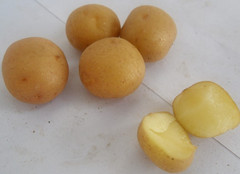 FAVORITA(費(fèi)烏瑞它)1981年由國(guó)家農(nóng)業(yè)部種子局從荷蘭引入,山東省農(nóng)業(yè)科學(xué)院蔬菜花卉所引入山東栽培,取名“魯引1號(hào)”,1989年天津市農(nóng)業(yè)科學(xué)院蔬菜花卉所引入,取名“津引8號(hào)”,又名“荷蘭薯”、“荷蘭七號(hào)”、“荷蘭15”,為我國(guó)主栽早熟品種之一,該品種出苗后60—70天即可收獲。 [特征特性]該品種早熟,株型直立,株高約60cm左右,莖桿粗壯,分枝少,葉片肥大,葉緣波狀,花淡紫色;結(jié)薯集中,薯塊膨大迅速,長(zhǎng)橢圓形,芽眼淺,黃皮黃肉,表皮光滑,食味好,適合加工和出口創(chuàng)匯,在香港及東南亞各國(guó)極為暢銷(xiāo);抗馬鈴薯Y病毒,對(duì)A病毒免疫;淀粉12.4%—14%,還原糖0.03%。植株易感晚疫病。塊莖感晚疫病和環(huán)腐病。輕感青枯病、退化快。產(chǎn)量高,畝產(chǎn)2000kg,高產(chǎn)可達(dá)3000kg以上。 [適宜范圍]該品種適宜性較廣,黑龍、遼寧、內(nèi)蒙古、河北、北京、山東、江蘇、廣東、廣西、貴州、四川等地均有種植,是適宜出口的品種。