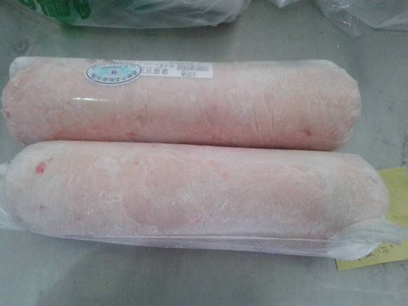 用排酸后的羔羊肉卷成圓柱狀,稱之為羔羊肉卷。做成長(zhǎng)方形