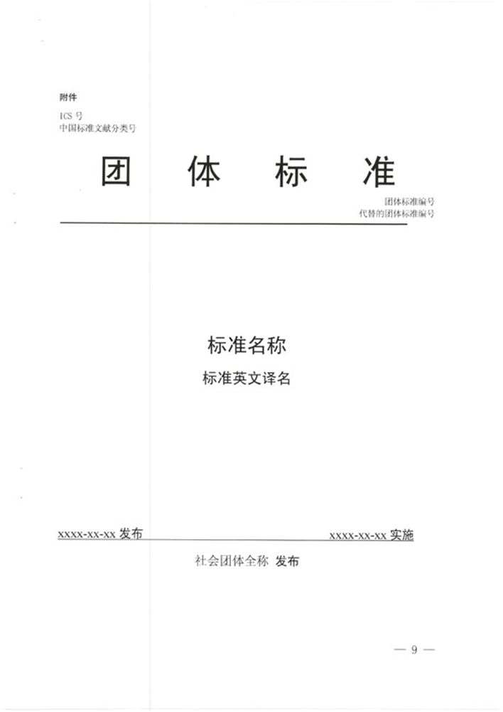 團體標準的封面格式應(yīng)當符合要求,具體格式見附件。
